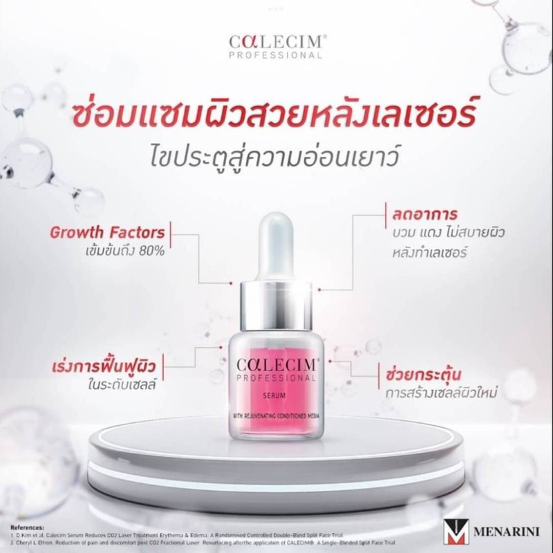 Calecim Professional Serum เป็น optimal platform สำหรับ in-clinic procedure และ cosmeceutical regimen ที่ช่วยในเรื่องของการลด downtime ต่างๆ ไม่ว่าจะเป็นลดแดง ลดบวม อาการไม่สบายผิว ช่วยเพิ่มผลลัพธ์ในเรื่องของ skin restoration ช่วยในการสร้างเซลล์ผิวใหม่และซ่อมแซมผิวหลังจากทำหัตถการต่างๆ ไม่ว่าจะเป็น IPL, RF, Laser, Microdermabrasion, Microneedling, Chemical peels