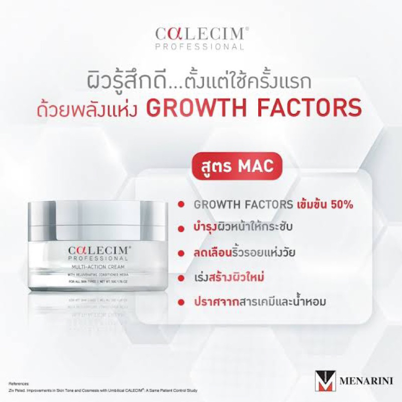 7.เป็น Growth Factor ที่มีการศึกษาวิจัยตีพิมพ์ลงใน JDD ในปี 2019 พบว่าการใช้ Calecim 50% cream