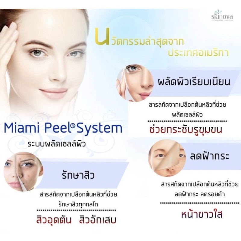 1️⃣Miami Peel Plus สูตร ฝ้า กระ ปรับสีผิว สูตรพัฒนาใหม่ ไม่มี Hydroquinone มี อย. ไทย 50 mL