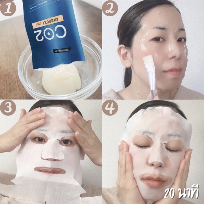 - High level of CO2 concentration for maximum effect เนื่องจากเป็น Professional use จึงมีความเข้มข้นของCO2 สูงกว่ามาส์คในท้องตลาดทั่วไป ผลลัพธ์ที่ได้จึงชัดเจนกว่า