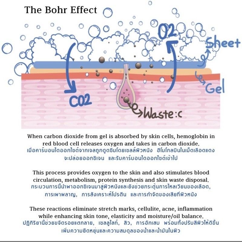 -Vasodilation Effect ก๊าซคาร์บอนไดออกไซด์ ทำให้หลอดเลือดขยายตัว กระตุ้นการไหลเวียนของเลือดมายังบริเวณที่ทำการรักษามากขึ้น ยังส่งผลให้การบำรุงหลังจากนี้ซึมเข้าผิวมากขึ้นด้วย