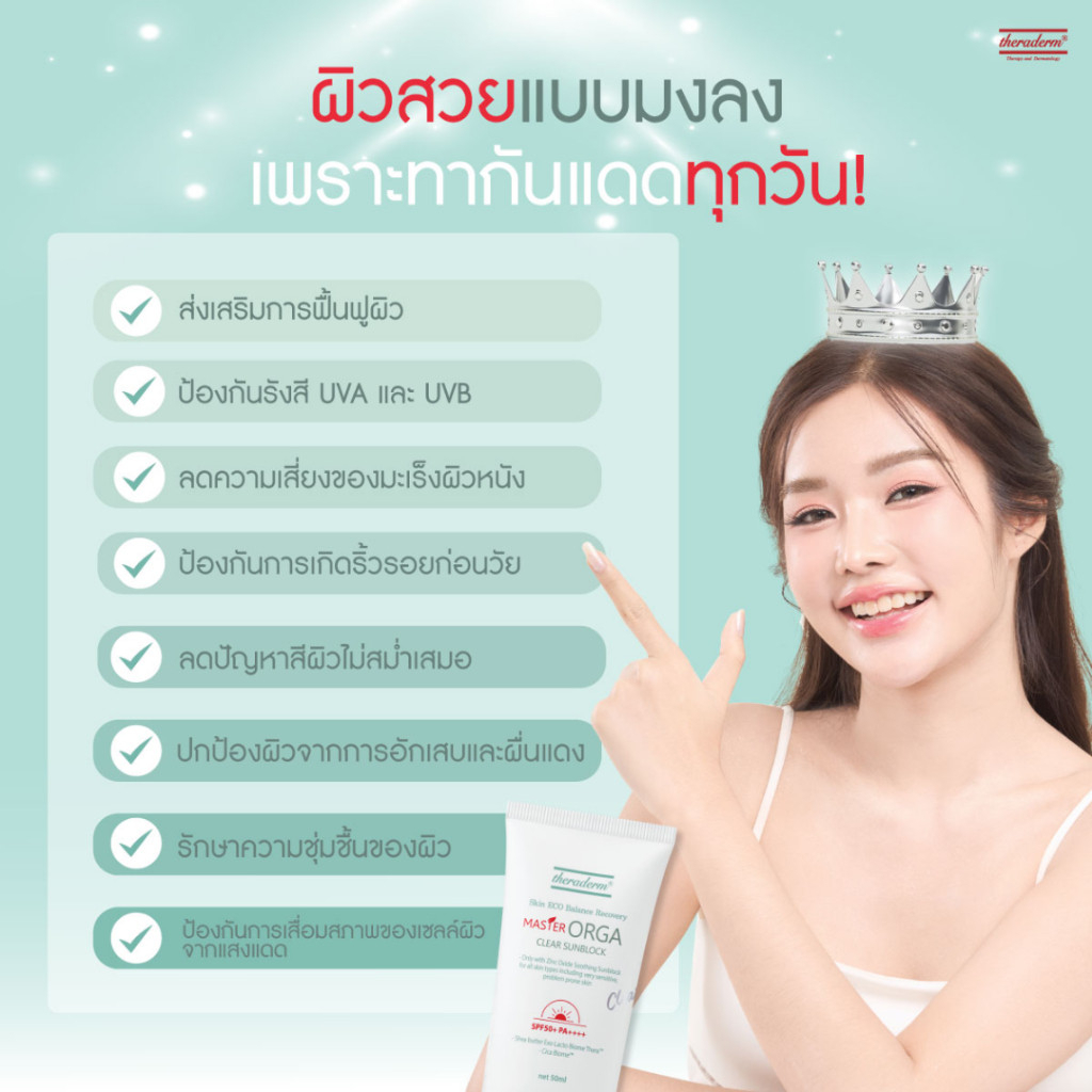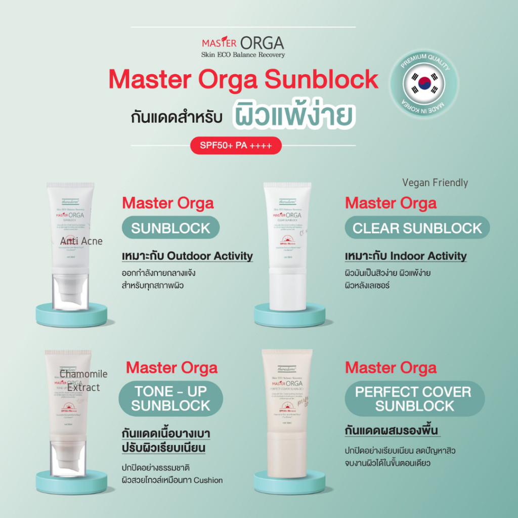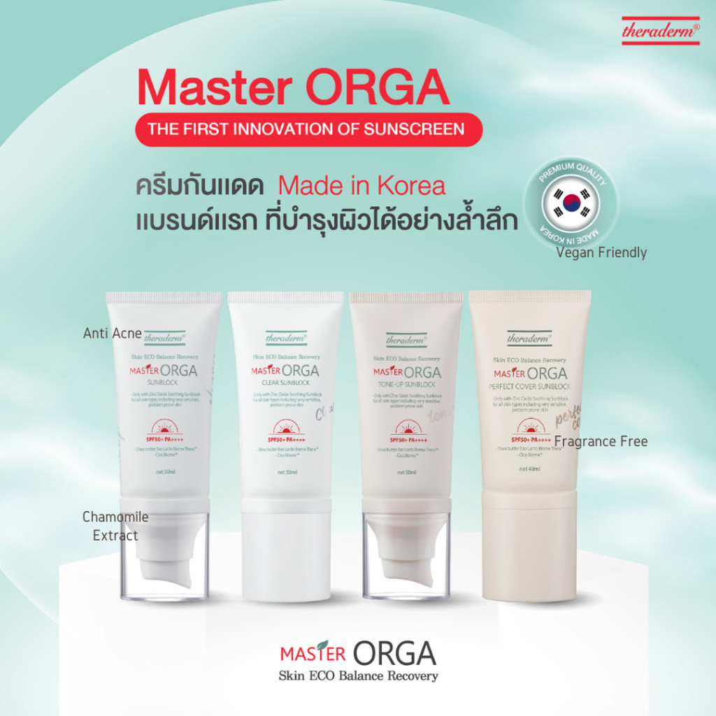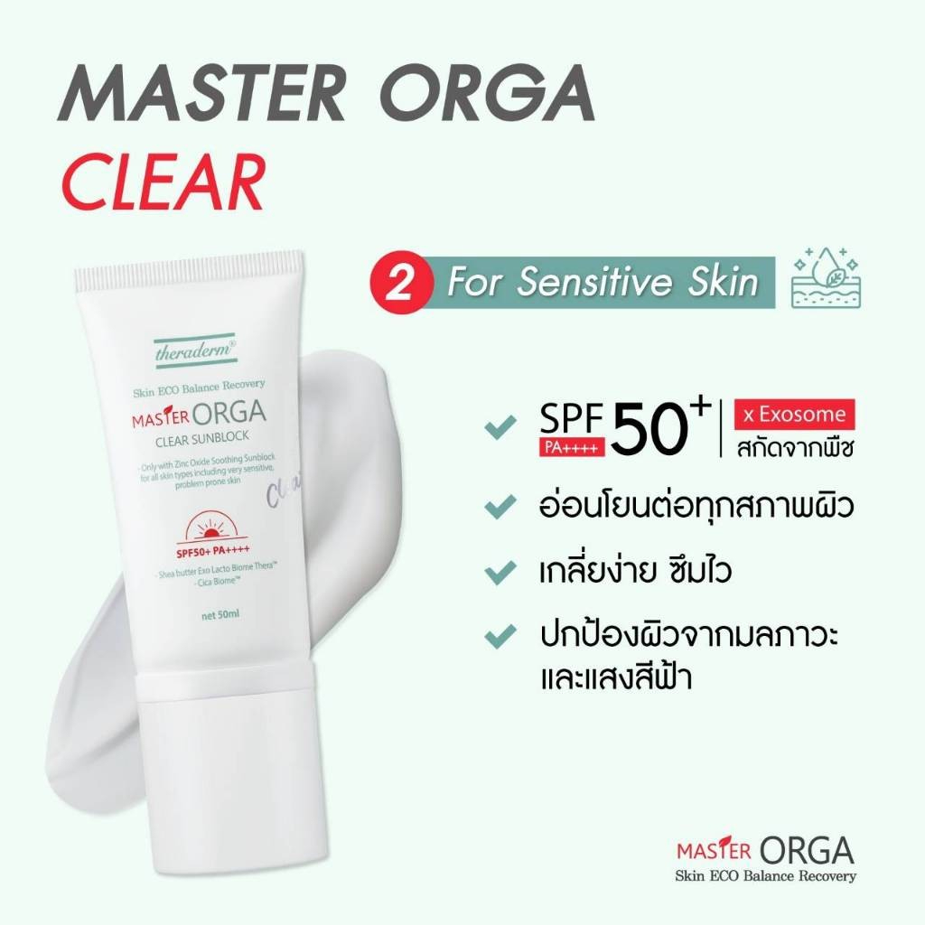 Master Orga Clear Sunblock 50 ml ผิวมันเป็นสิวง่าย ผิวแพ้ง่าย ไวต่อแดด รวมถึงผิวเด็ก