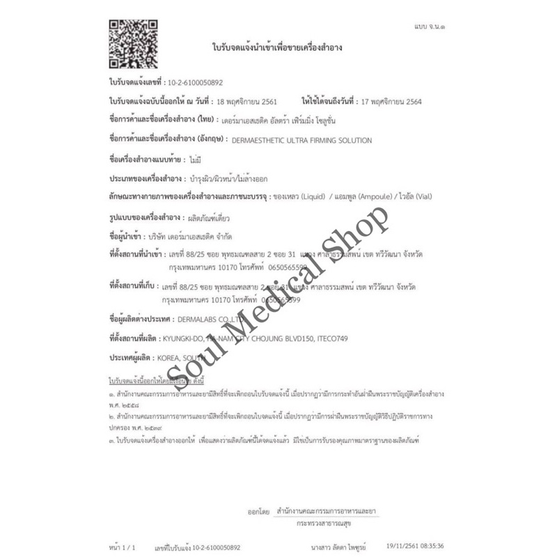 เลข อย. 1026100050892