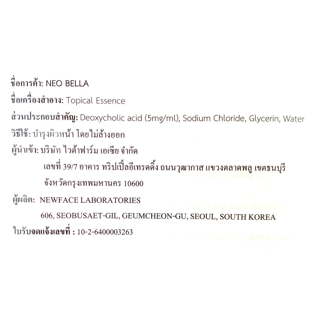 Neobella Slim Essences ราคาต่อ 1ขวด เอสเซนบำรุงผิว มี อย.ไทย 662320010761